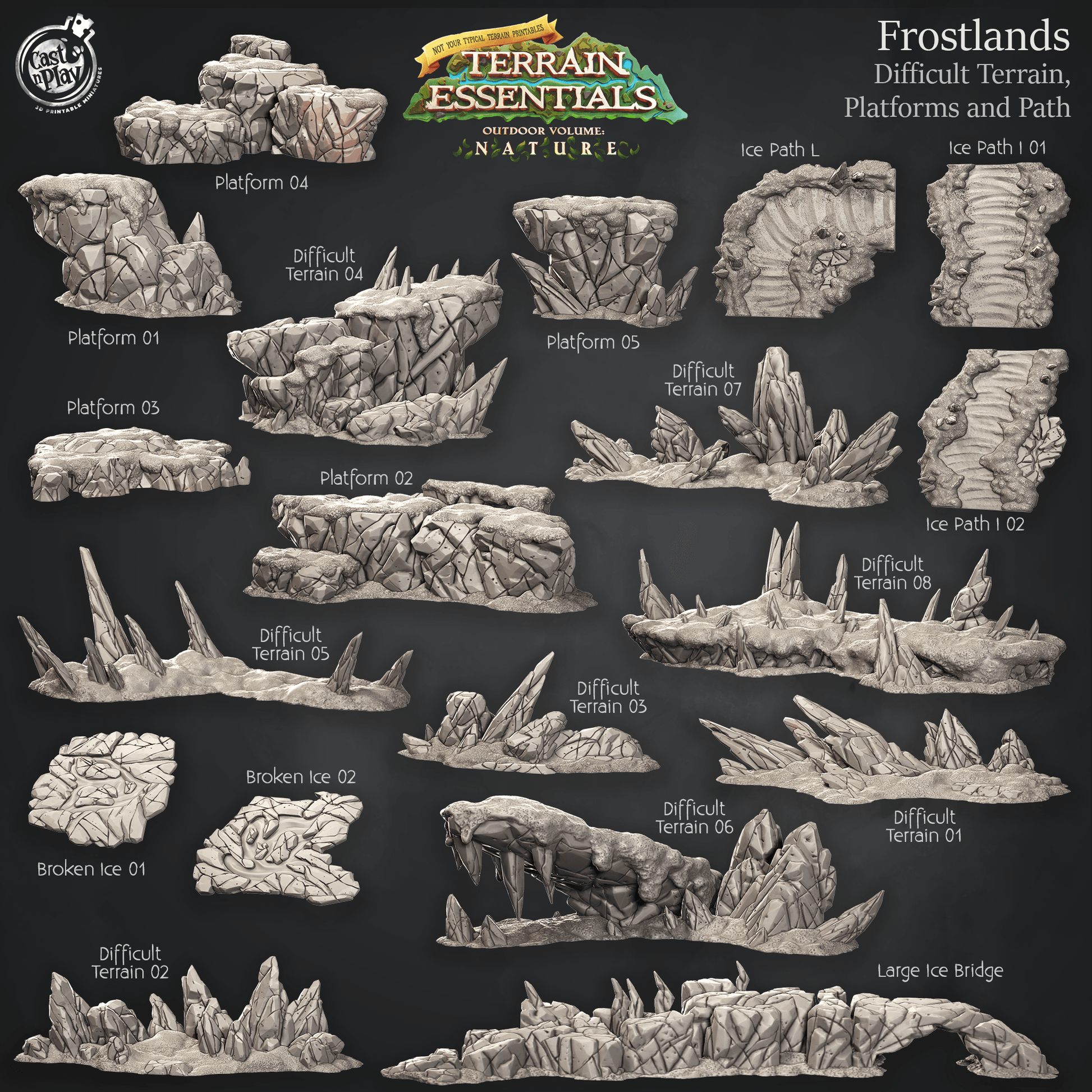 3D Printed Cast n Play Difficult Terrain, Platforms and Path Frostlands Terrain Set Terrain Essentials Nature 28mm 32mm D&D
