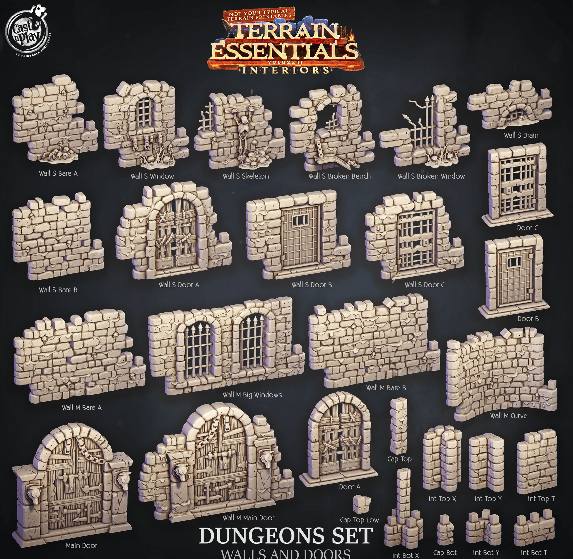 3D Printed Cast n Play Dungeons Walls and Doors Terrain Essentials 28mm 32mm D&D